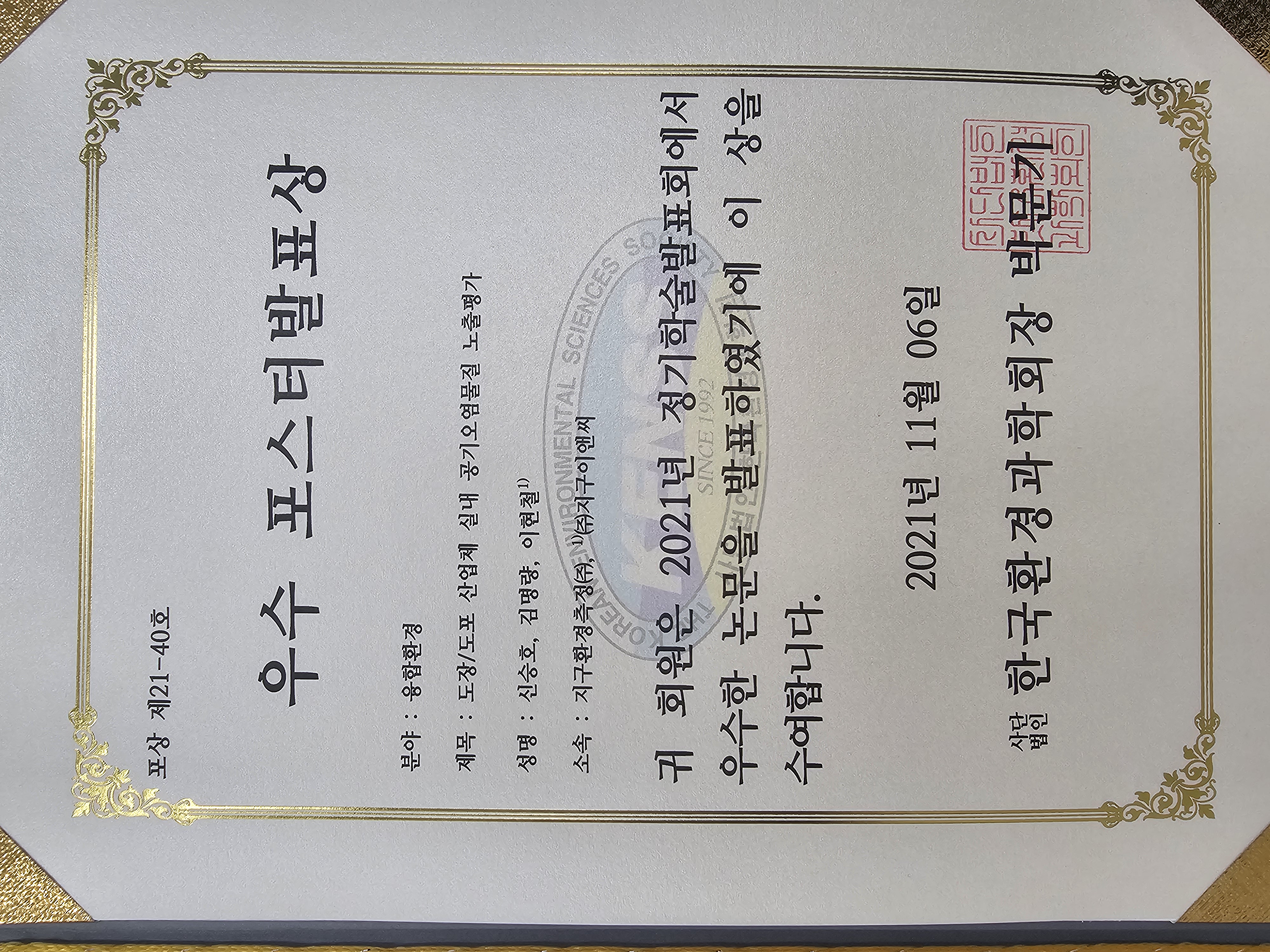 2021년 한국환경과학회 우수 포스터발표상